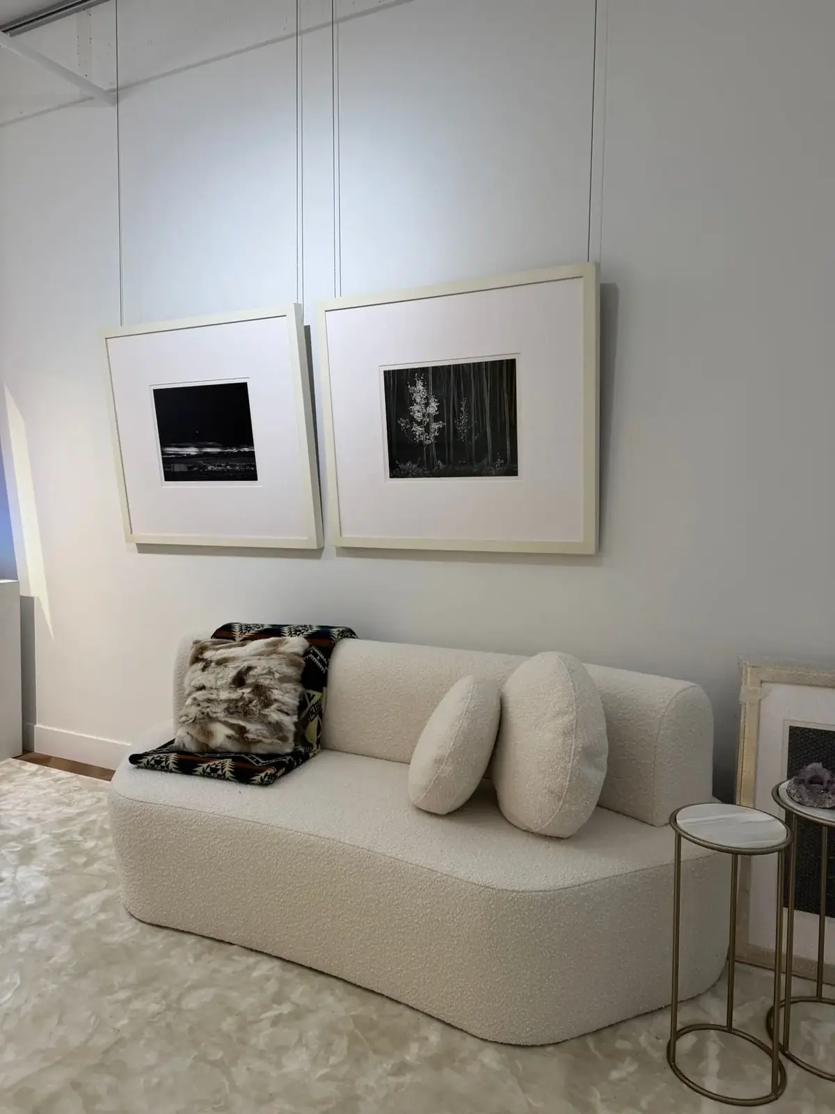 Handcrafted for Aspen Wynn Fine Art, the Aspen Sofa embodies geometric shapes of a snowflake. The silhouette is upholstered in a rich bouclé, while its sleek lines offer exceptional comfort, transforming the piece into a refined statement of contemporary design.